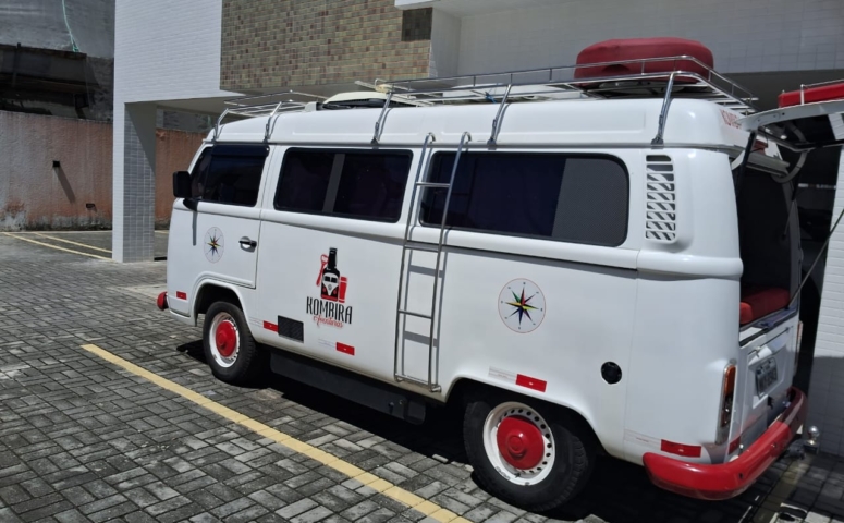 Motorhome Kombi Home ano 2014, localizado em Cabedelo/PB, com documentação regularizada para Motor Casa e IPVA 2024 pago.