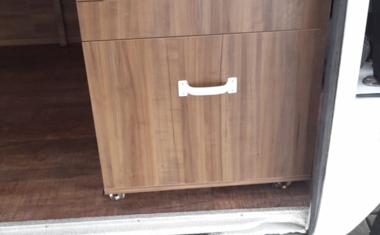 O veículo dispõe de diversos armários aéreos, sob o banco, baú e compartimento traseiro, oferecendo ótimo espaço de armazenamento.
