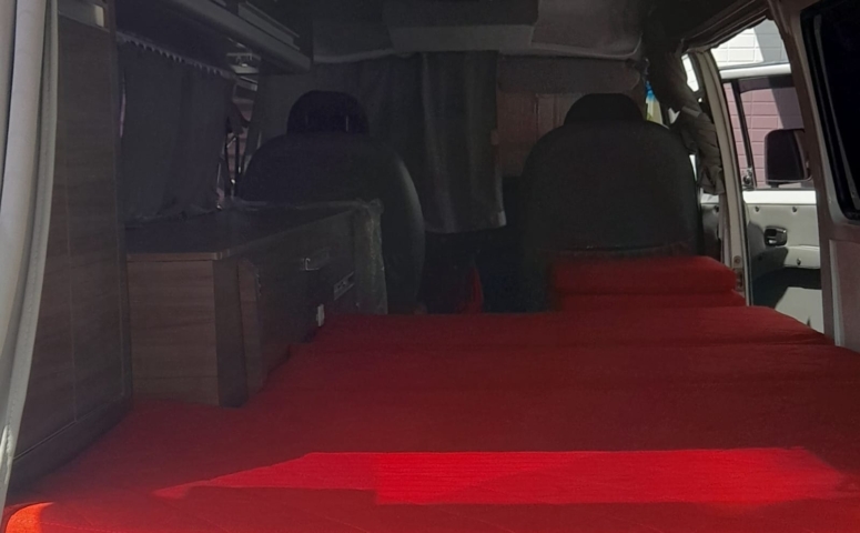 A área de descanso possui cama com medidas de 1,90 m por 1,30 m, com colchão de densidade 33, além de TV de 12 polegadas. Os bancos dianteiros e portas são revestidos, o banco do caroneiro é giratório e todo o interior conta com cortinas.